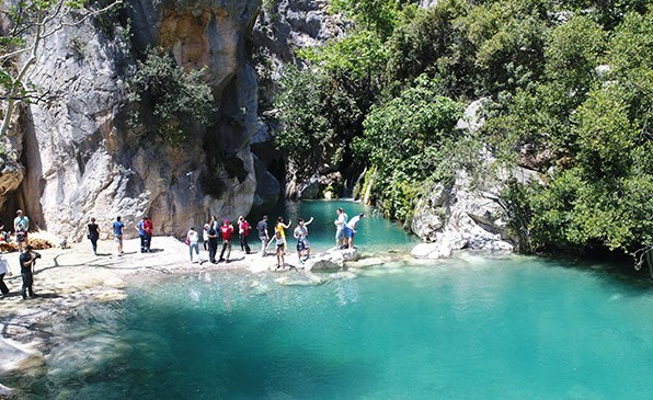 Der Antalya Kemer Göynük Canyon ist einer der 10 längsten Canyons der Welt. Es hat auffällige Farben mit seiner Natur, Wasserfällen, Wald, Grün, hohen Pinien, natürlichen Seen und türkisgrünem Wasser. Der Göynük Canyon ist eine gute Natursportalternative für Sportliebhaber. Es umfasst viele Sportarten wie Wandern, Schwimmen, Klettern, Bootfahren und so weiter.