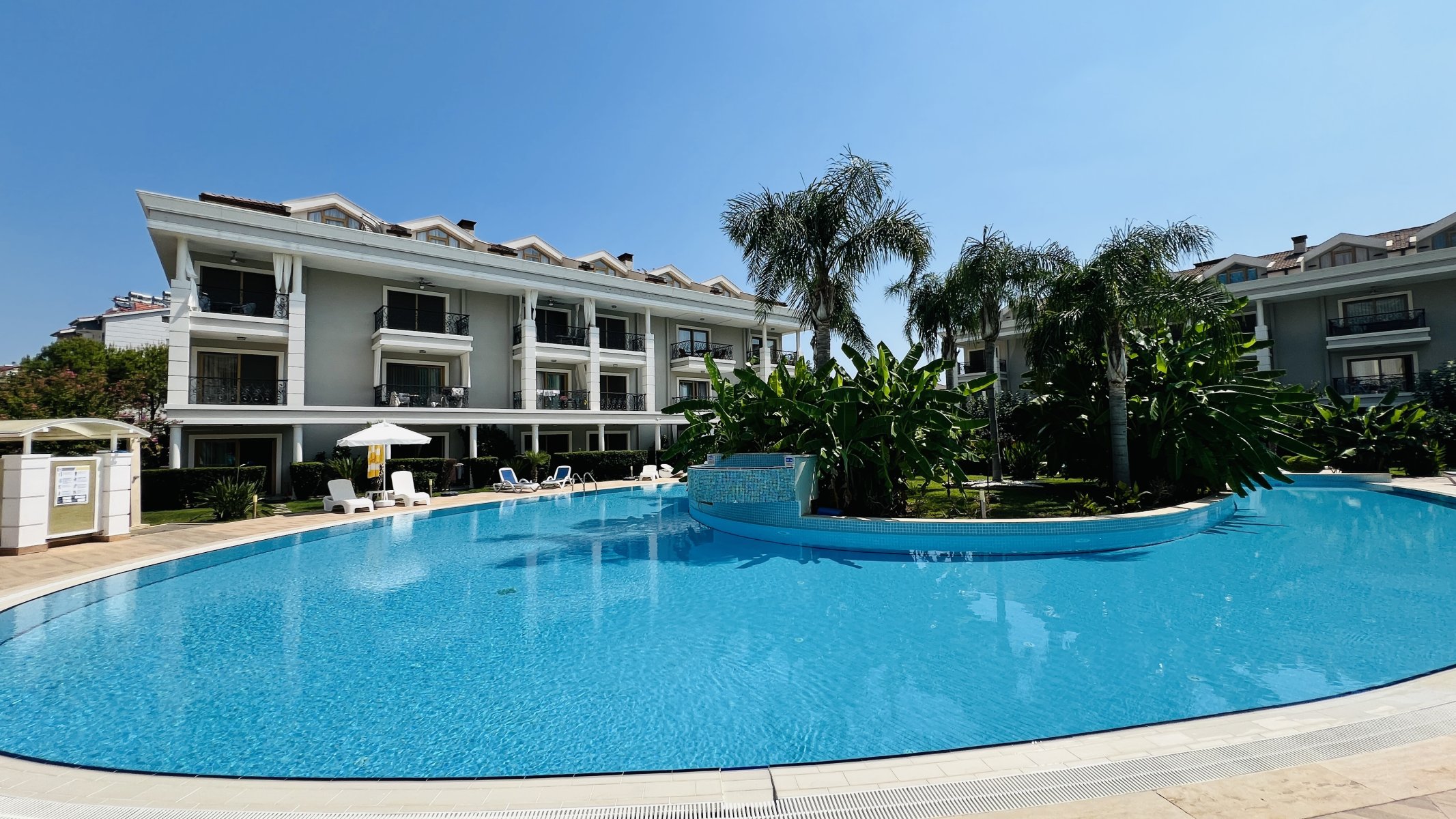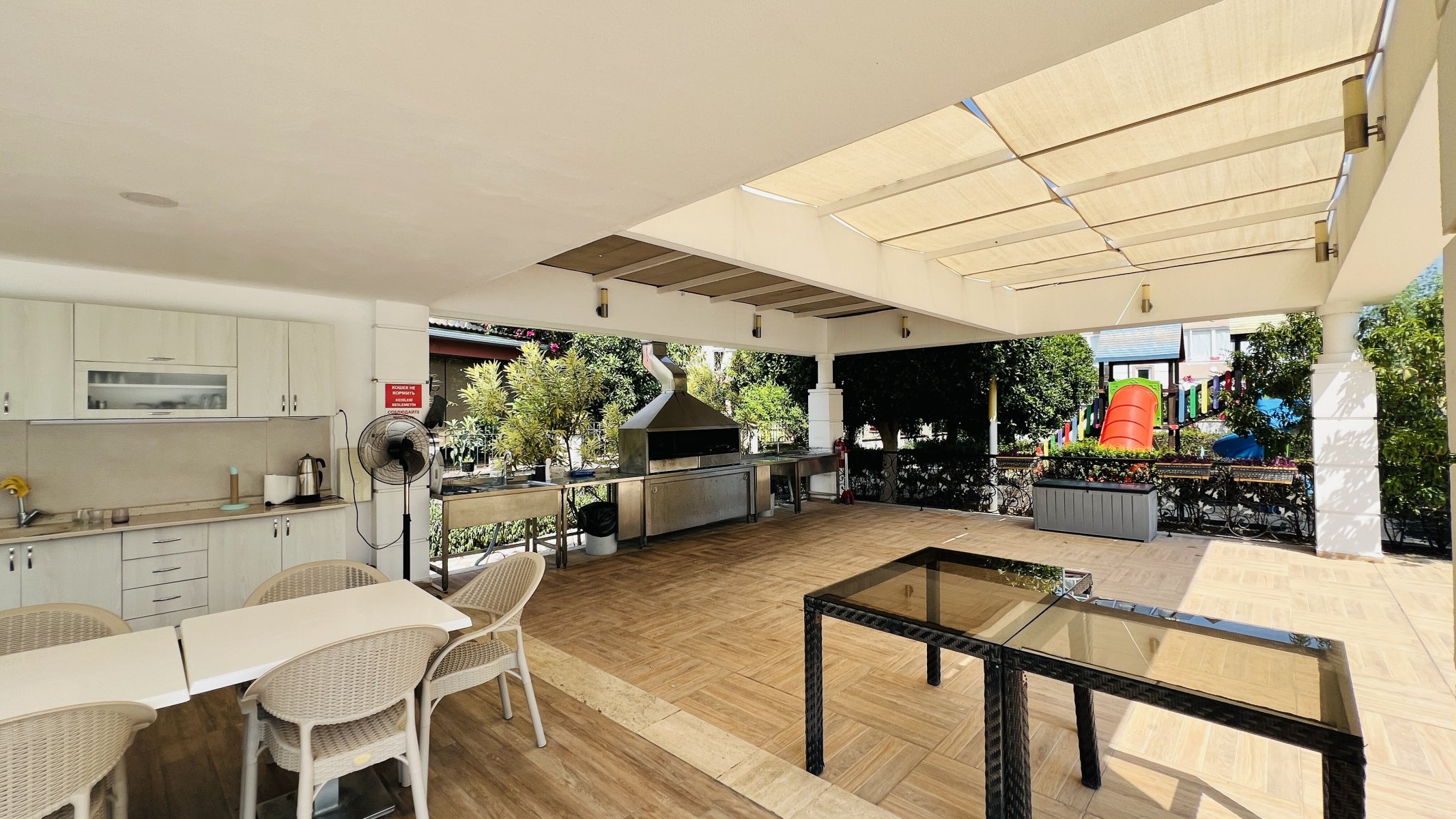 The apartment for sale in Arslanbucak is 3 km from Kemer center, 4 km from the sea, 200 m from the shopping center and 60 km from Antalya Airport. In addition, there are bus stops, children's playgrounds, markets, pharmacies, etc. within walking distance of the complex.
