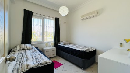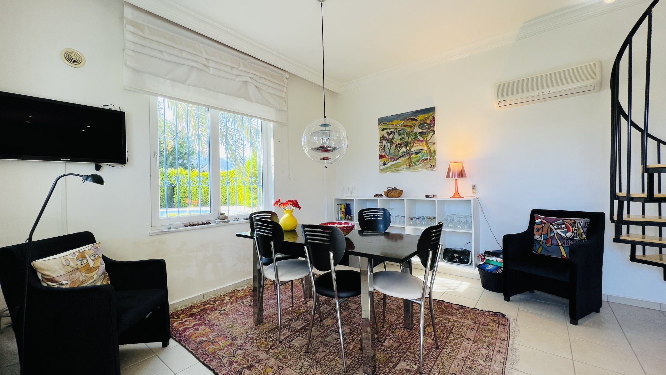 Satılık olan daire toplam 2 adet tapudan oluşmaktadır. Zemin kat (havuz başı) : Geniş teras havuz ve dağ manzarasına sahip 2 yatak odası , 1 salon , 1 banyodan oluşmaktadır. Birinci kat : 2 yatak odası , 1 salon , 1 banyodan ve 2 balkondan oluşmaktadır.
