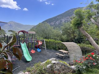 Satılık mülk, her katta bir tane olmak üzere iki izole daireden oluşmaktadır. Evi ister kendi ikametiniz için, ister kiraya vermek için kullanmak mümkündür. Satılık villa, muhteşem dağ manzarasına sahip, ekolojik açıdan temiz bir bölgede yer almaktadır.
