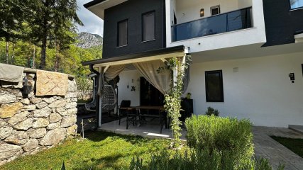 Çam ağaçları arasında deniz seviyesinden 800 m yükseklikte 3+1 planlı bitişik nizam villa satılıktır. Satılık villa Kemer Beycik bölgesinde yer almakta olup muhteşem dağ manzarasına sahiptir. Bitişik nizam satılık villa, en iyi konuma sahip bir komplekste yer almaktadır.