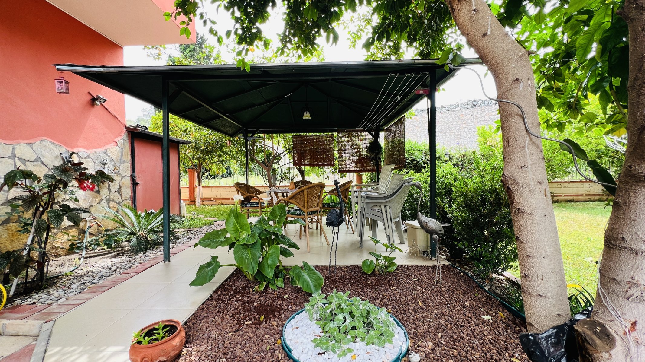 Bahçe alanı ortak kullanılan alanların dışında bu villa köşe başı olduğu için köşede kendine ait otorma bölümü mevcuttur. Sitede bulunan 9 villa 2 adet havuzu ortak olarak kullanmaktadır.