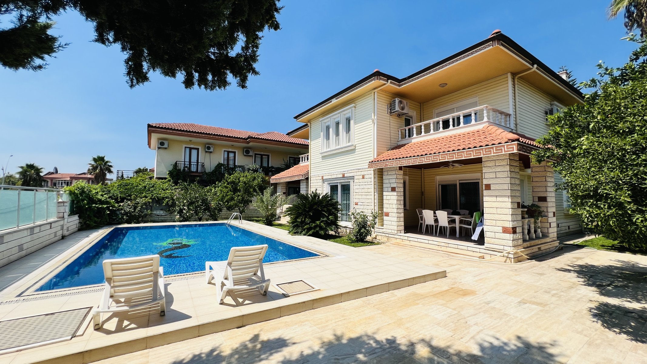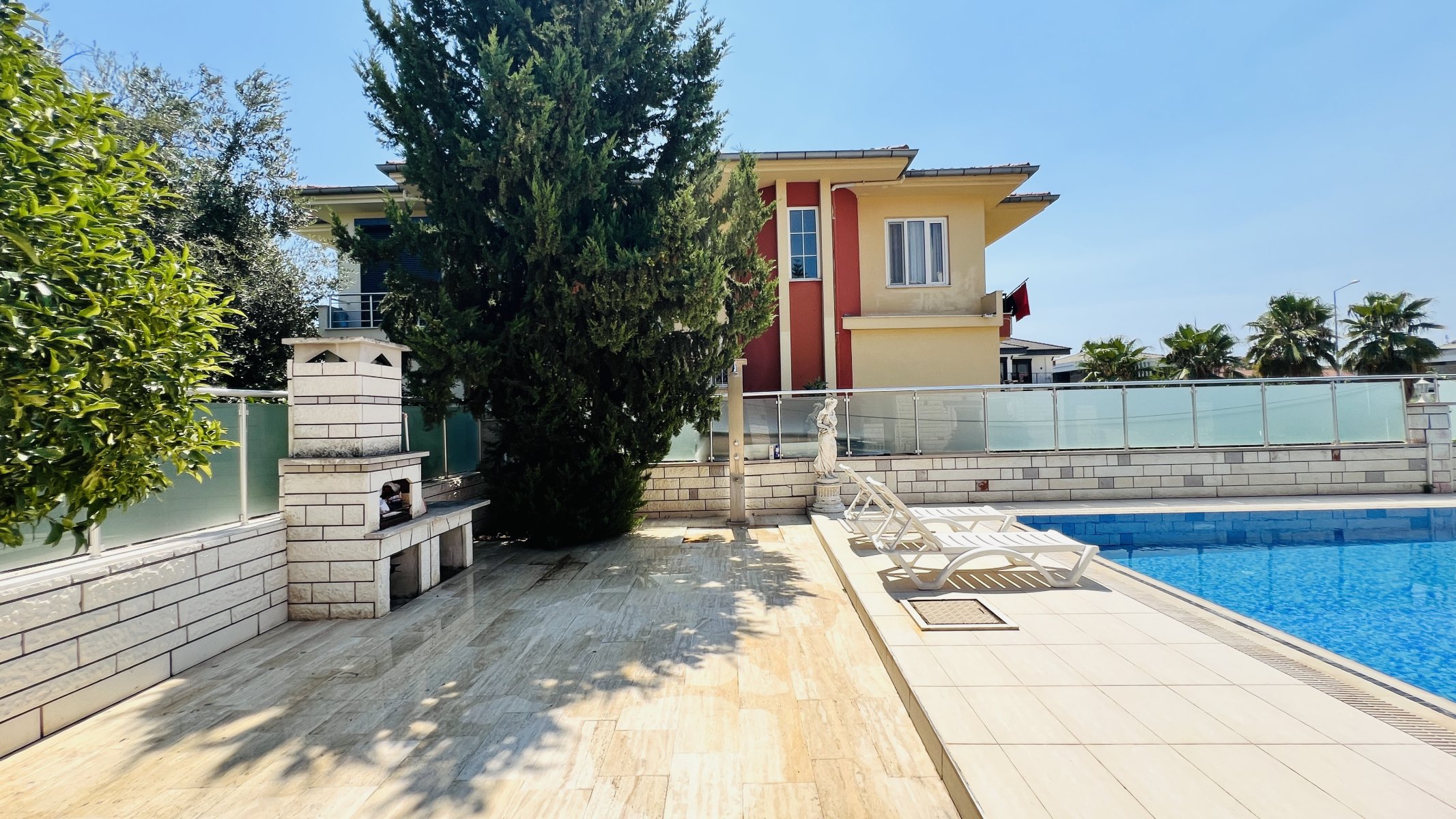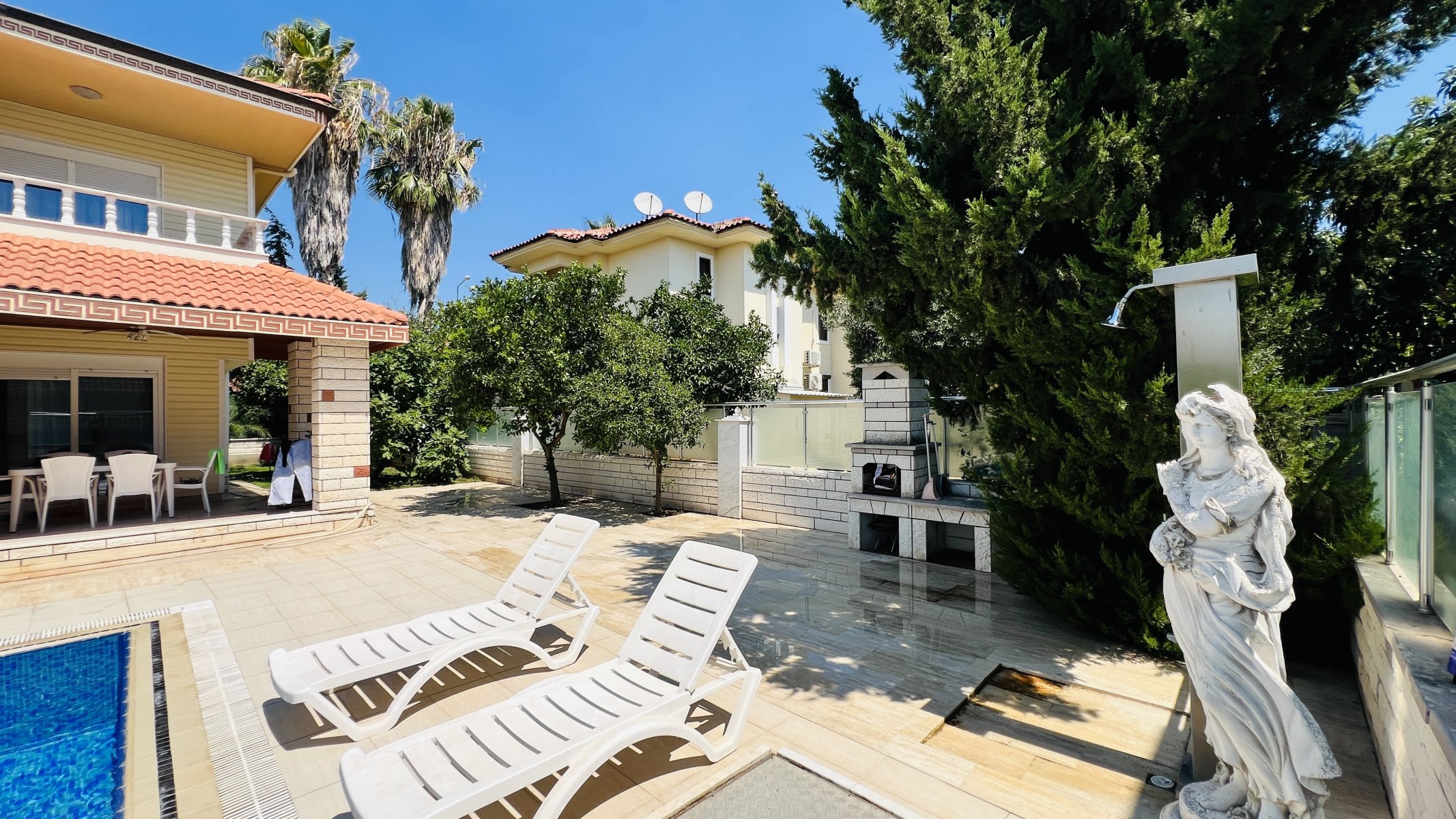 Kendine ait 569 m² arsa kullanım alanı olan satılık müstakil villa yüzme havuzu, kendine ait otopark alanı, barbekü alanı ve harika dağ manzarası ile keyif dolu yaşam sunmaktadır.