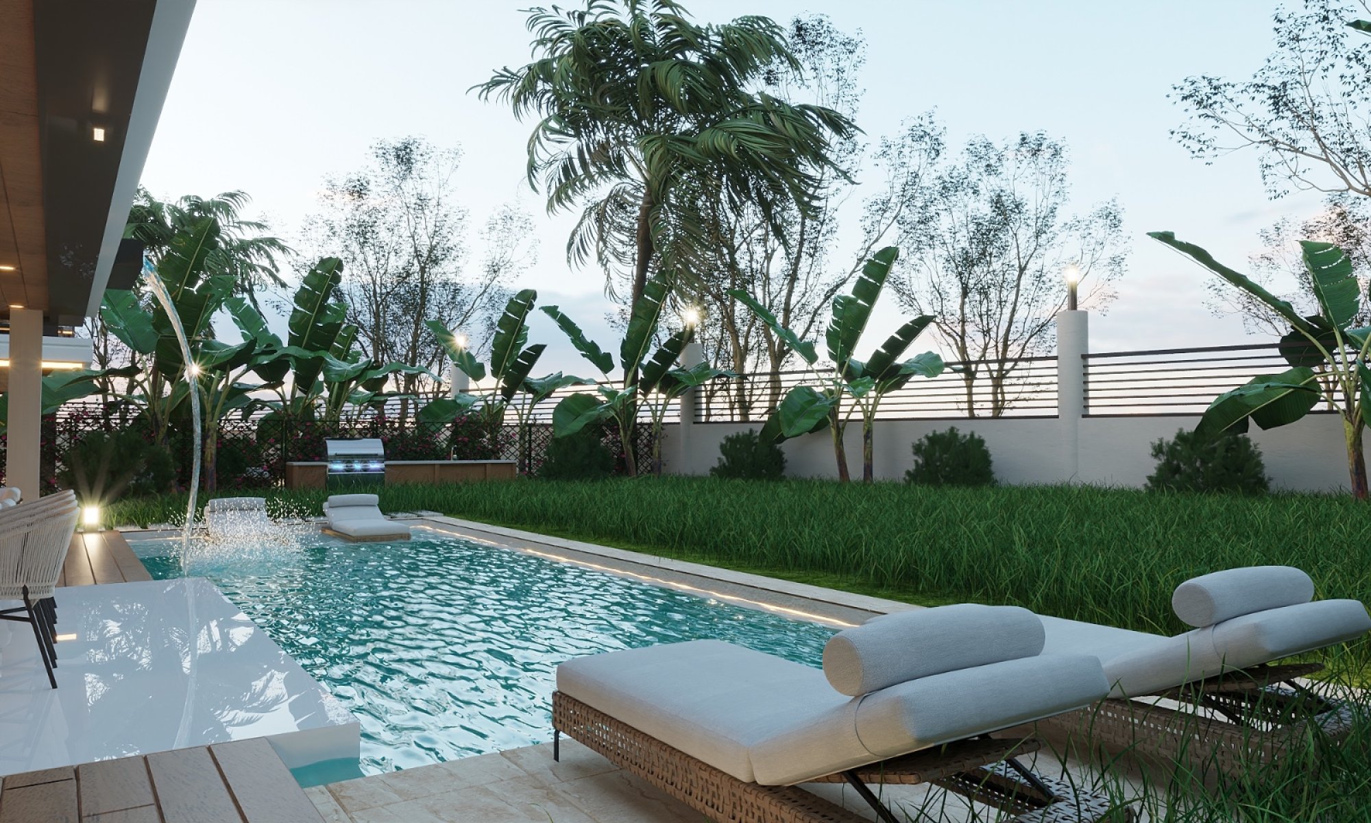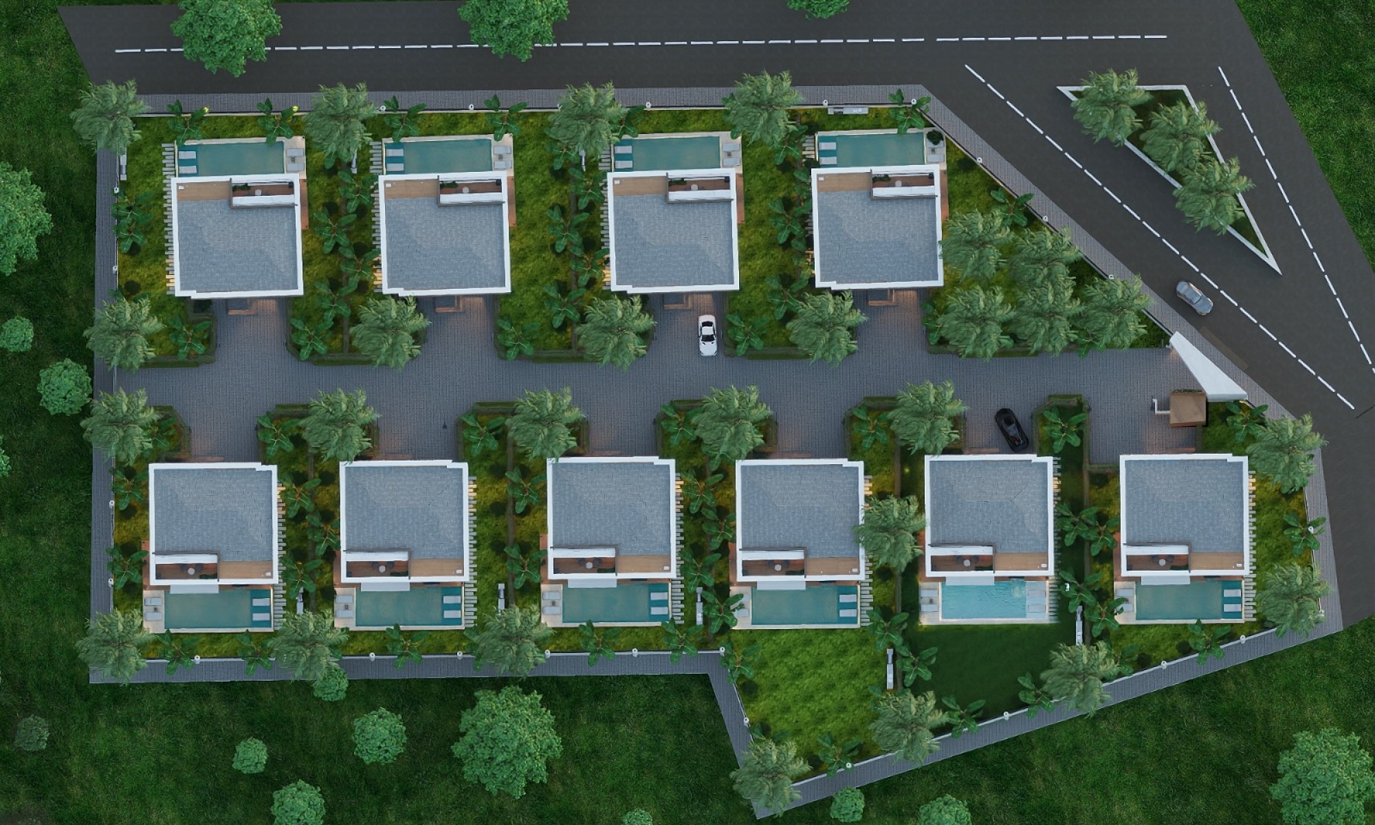 Villanın çevresi, bakımlı bahçesi ve otomatik sulama sistemiyle profesyonel peyzaj düzenlemesine sahiptir. İki araçlık özel otopark alanı bulunmaktadır. Konut, 7/24 servis ve bakım hizmeti kapsamında olup yaşam konforunu en üst seviyeye taşımaktadır.