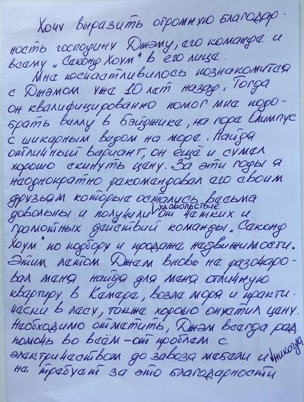 Хочу выразить искреннюю благодарность агентству Kemer Second Home Turkey за профессионально проведённую сделку по продаже моей недвижимости. Команда полностью сопровождала процесс, помогла с оформлением всех необходимых документов, что для меня было особенно важно.