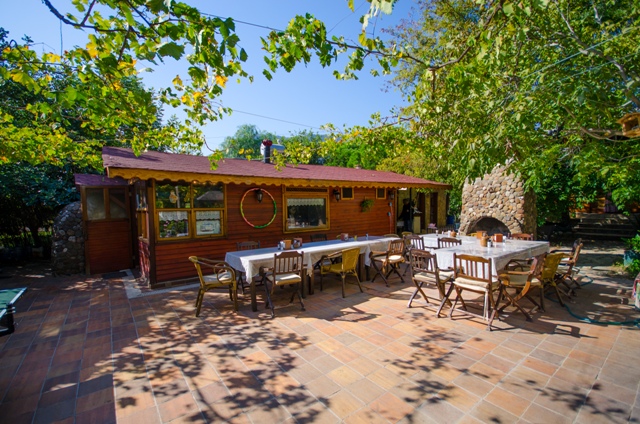 All the rooms have WC, shower, hot water,towels,hair drier and hot/cold air conditioning. 7 rooms have one double and one single bed. 6 rooms have one double and two single bunk beds. A barbecue, fireplace, bar and restaurant is in the garden. For cool temperatures, covered and open restaurants with fireplaces available.