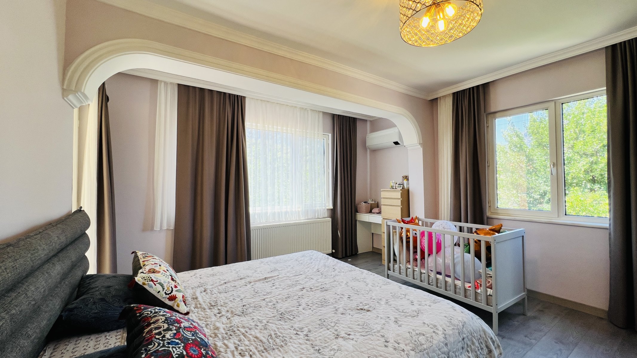 Det er en 2+1 leilighet i første etasje av bygget. Det er også en 2+1 leilighet i andre etasje. Det er en 1+1 leilighet i tredje etasje. Alle de tre leilighetene er isolerte og har separate innganger, og du kan leie dem som 3 separate leiligheter eller bruke dem som et romslig oppholdsrom for en stor familie.