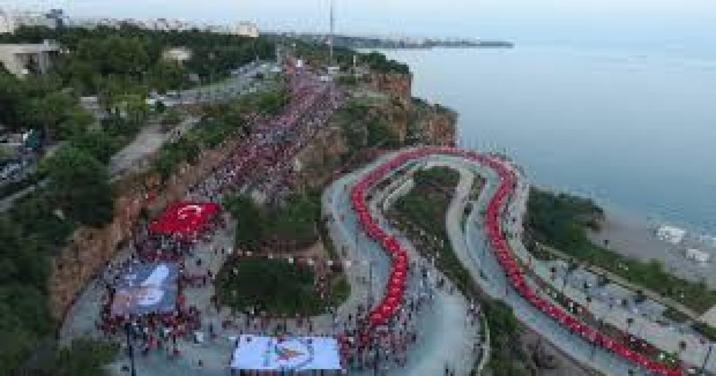 А в национальный праздник 19 мая (День памяти Ататюрка / День молодежи и спорта) по обновленному спуску к морю и парку BeachPark пронесли 600-метровый флаг Турции.