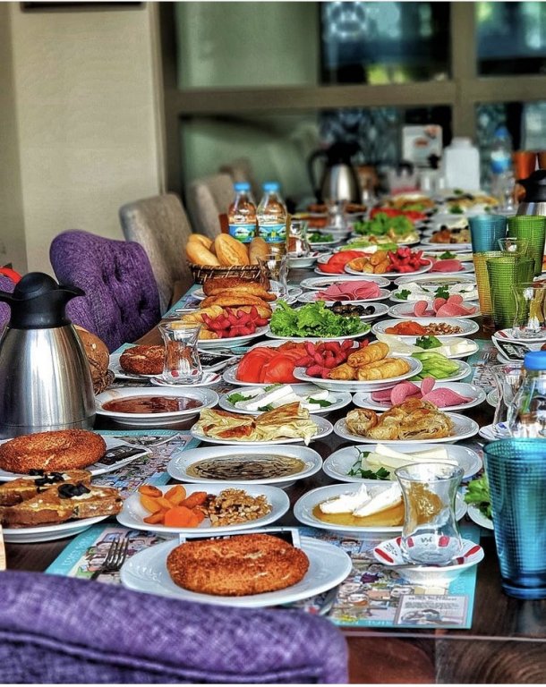 Güneş gören teraslarında oturarak sabah kahvaltısı Türk çayı ve güzel bir simitle muhteşem bir hale gelebilir.