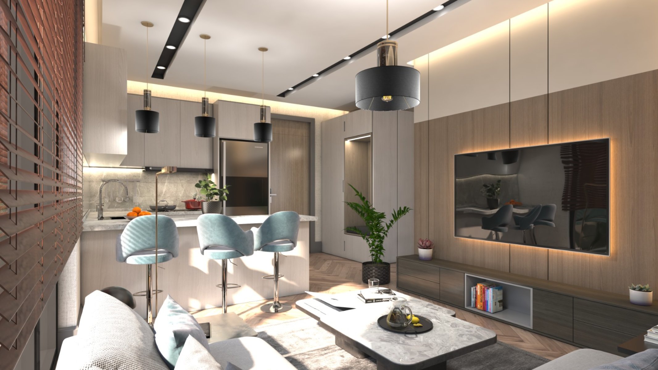 Satılık daire 1 yatak odası, 1 salon, açık plan mutfak, banyo, tuvalet ve 2 balkondan oluşmaktadır. 62 m² ve 80 m² farklı tipte satılık 1+1 daireler mevcuttur.