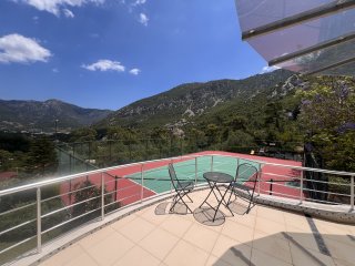 Antalya / Adrasan'da dağlarla çevrili muhteşem doğa içerisinde satılık müstakil ve tenis kortlu villa