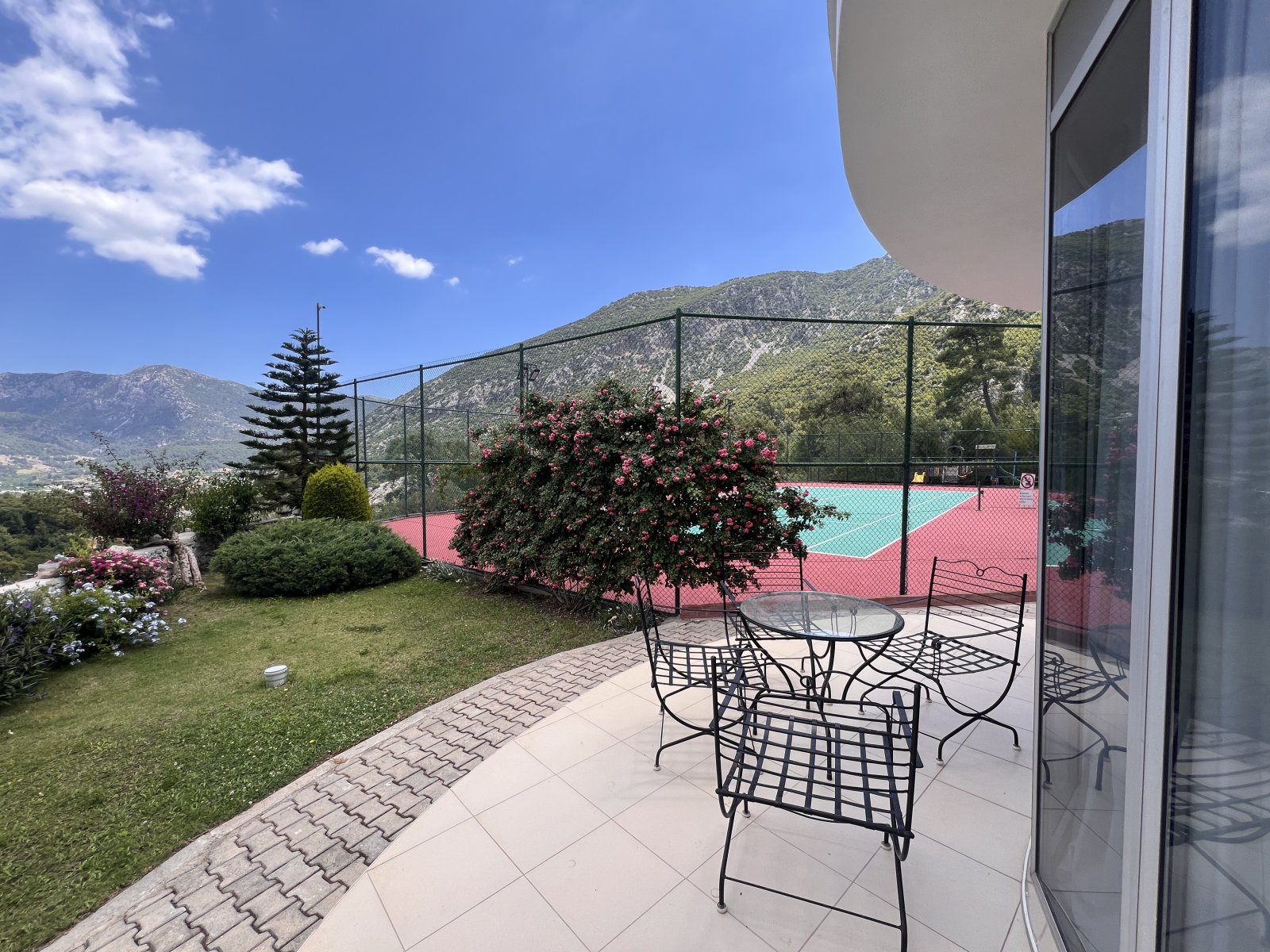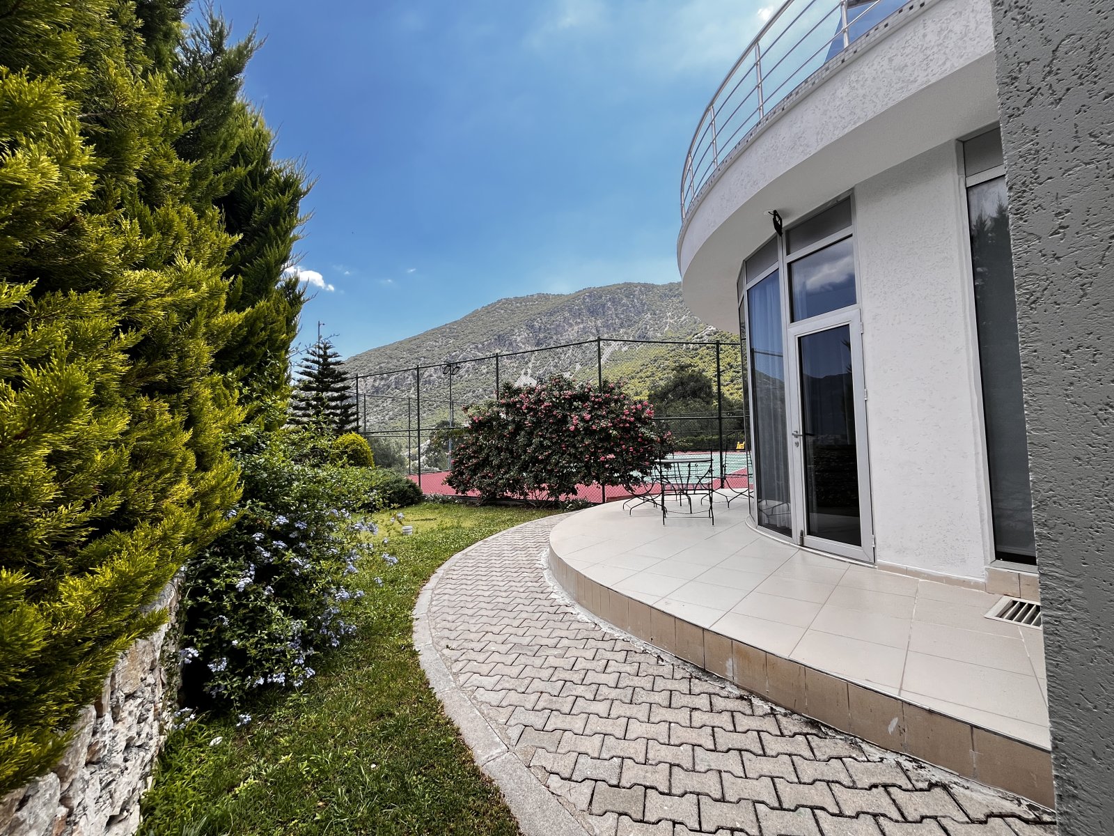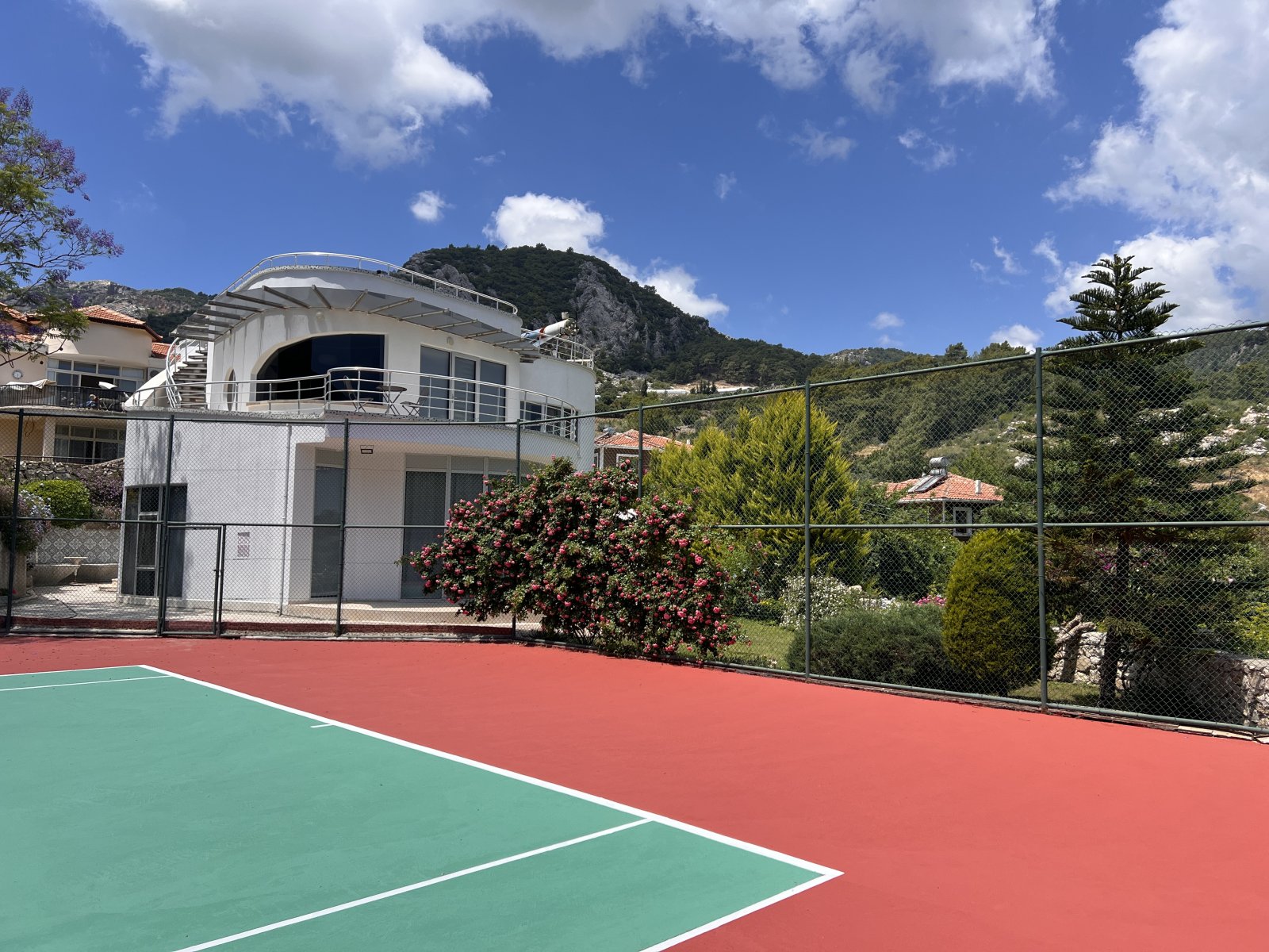 Villa kullanımına ait kaliteli tenis kortu, üç araçlık park yeri ve kamera sistemi bulunmaktadır.