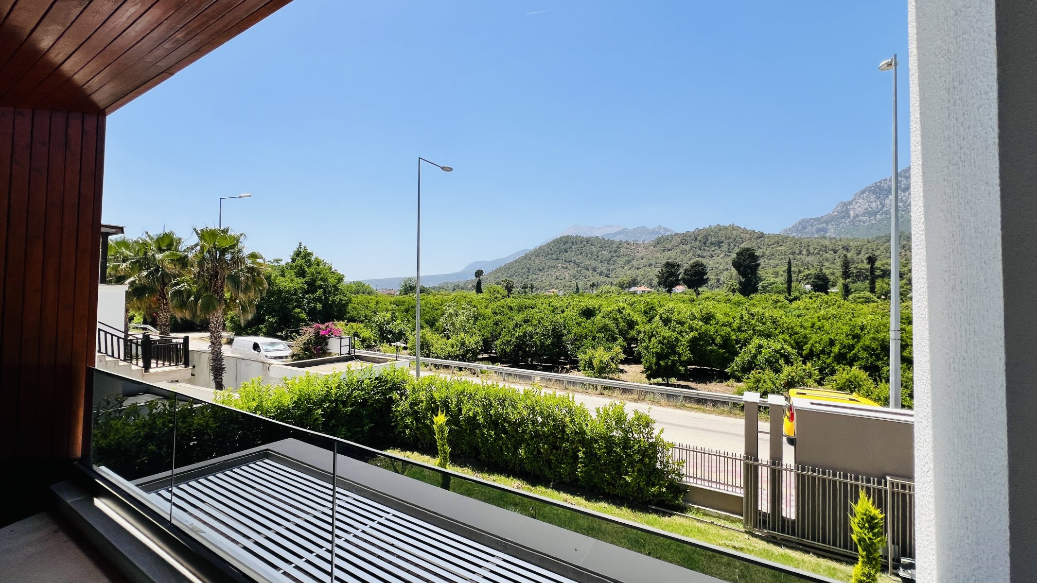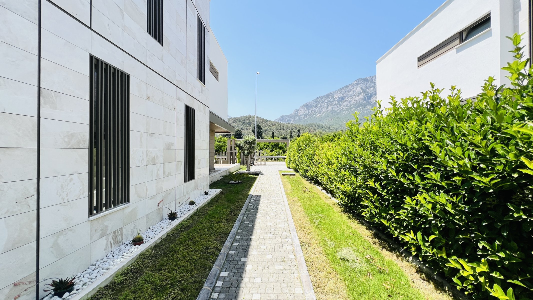 Villa müstakil, kendine ait bahçe, havuz ve otopark alanı mevcuttur. Toplam 352 m² arsa payı vardır. Eşsiz dağ manzarasına sahip satılık villa denize yakın konumu ile dikkat çekmektedir.