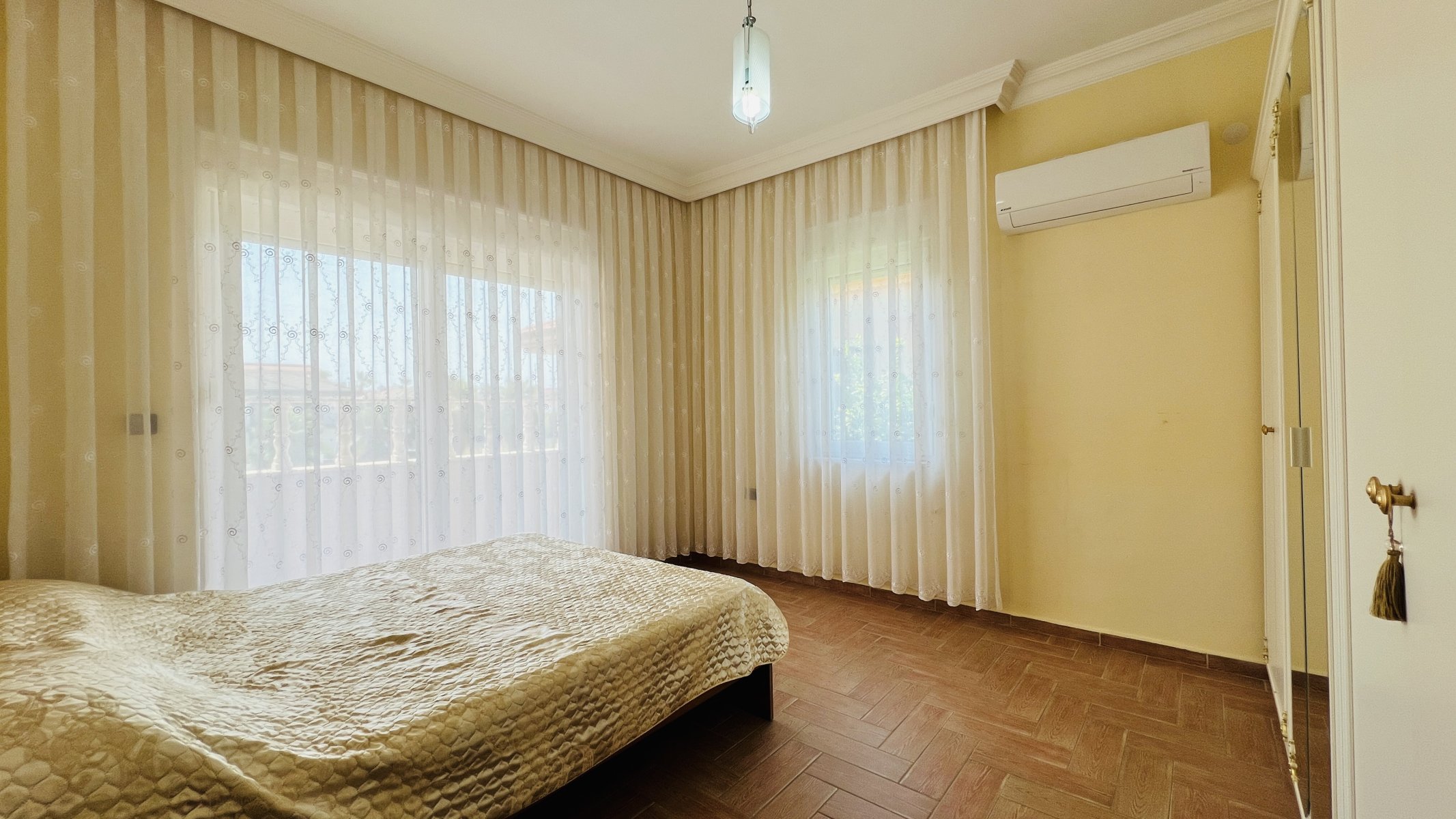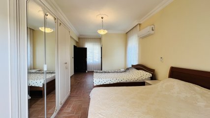 Kemer Çamyuva da denize sadece 300 m yürüme mesafesinde satılık müstakil villa hem yazlık hem de kalıcı yaşam için idealdir.  4+1 odalı, komple eşyalı olarak satışa sunulmuş olan bu villa konforlu bir yaşam vaat etmektedir.