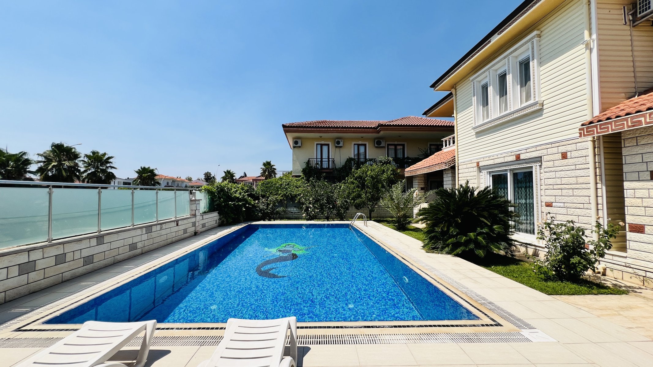 Kendine ait 569 m² arsa kullanım alanı olan satılık müstakil villa yüzme havuzu, kendine ait otopark alanı, barbekü alanı ve harika dağ manzarası ile keyif dolu yaşam sunmaktadır.