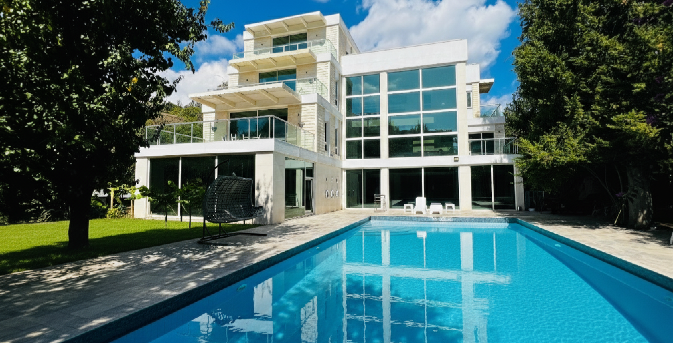 Antalya Kemer Arslanbucak'ta SATILIK LÜKS VİLLA, toplam 797 m2 kullanım alanına sahip, 1358 m2 kendine ait bahçe ve havuzlu toplam 6 yatak odalı ve 6 abeveyn banyoludur.