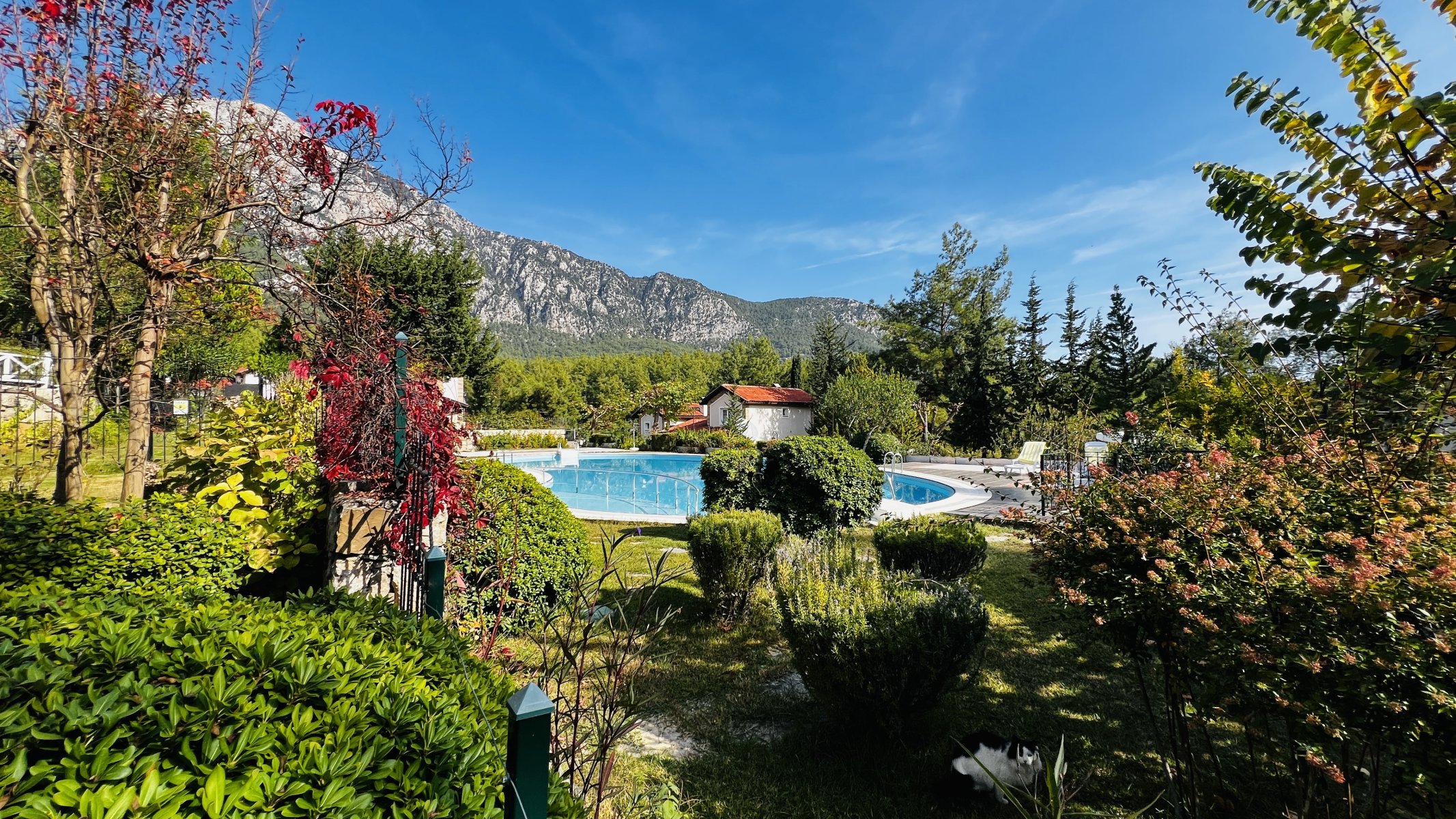 Villanın her penceresinden Toros Dağları’nın büyüleyici manzarası izlenebilir. Doğanın içinde, tamamen sessiz ve huzurlu bir konumda yer alan mülk, 2126 m² arsa üzerinde inşa edilmiş toplam altı villalık özel bir yerleşimde bulunmaktadır. Ortak kullanımda geniş bahçe alanları ve yüzme havuzu yer alırken, bu villaya ait özel müstakil bahçe alanı da mevcuttur.