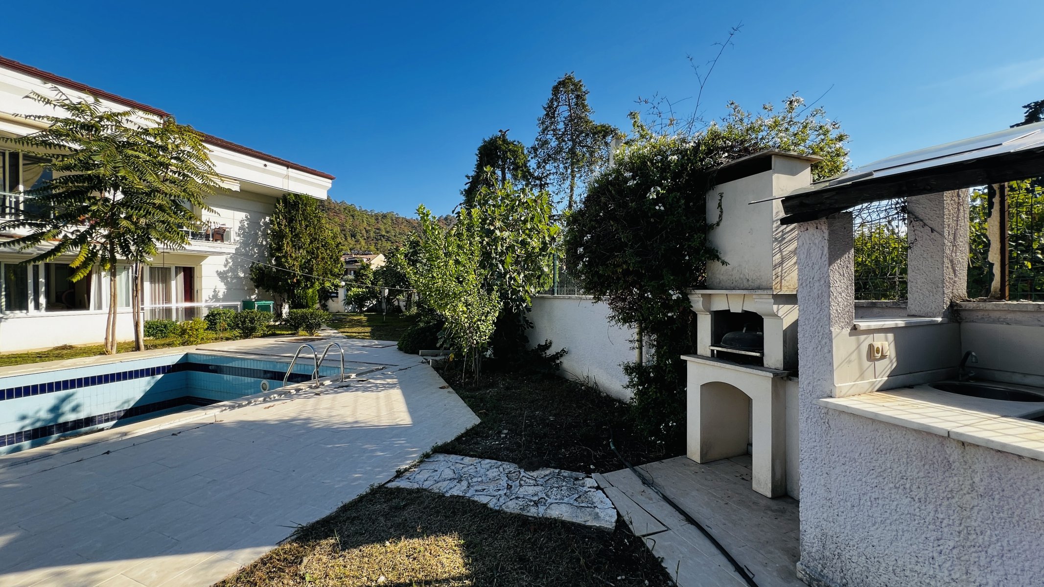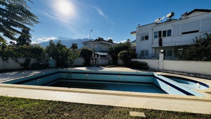 Kemer merkezde satılık daire dağ manzarasılı, barbekü alanı olan bir sitedir.