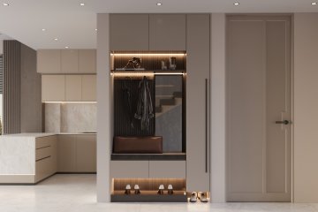 Giriş katında açık mutfak ile birleşen geniş bir salon, misafir tuvaleti ve geniş bir teras bulunmaktadır.